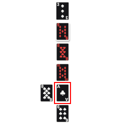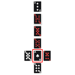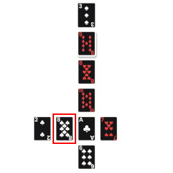Vergeet niet dat je horizontaal speelt. Je legt de kaarten in een rij, naast elkaar. Als je een gok fout hebt, verwijder je de hele horizontale rij kaarten.
