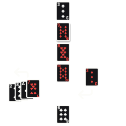 Als een rij wordt weggespeeld, gaan die kaarten terug de speelstapel. Leg vervolgens een nieuwe nieuwe kaart op de plek van de rij. Deze speler is wederom aan de beurt.