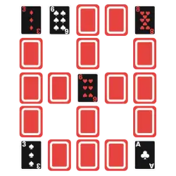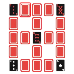Om te beginnen leg je met zestien kaarten een vierkant van vijf bij vijf kaarten gesloten neer op tafel (dit is de Gassen variant). Optioneel kun je ook nog ervoor kiezen om een plusje aan kaarten in het midden toe te voegen (dit is de Vierkanten variant).